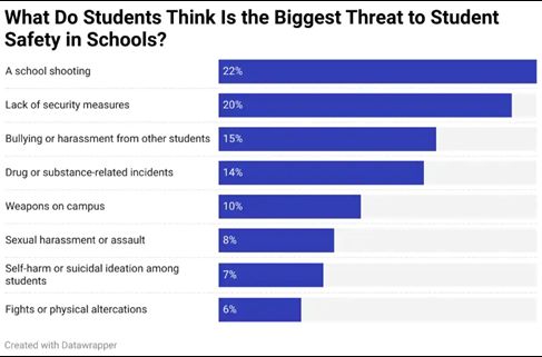 In fact, among possible security threats, students believe school shootings are the biggest threat to their safety. Whether or not this is true is immaterial.